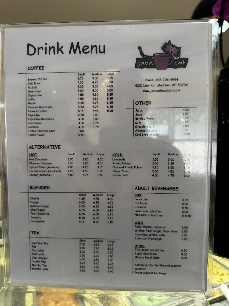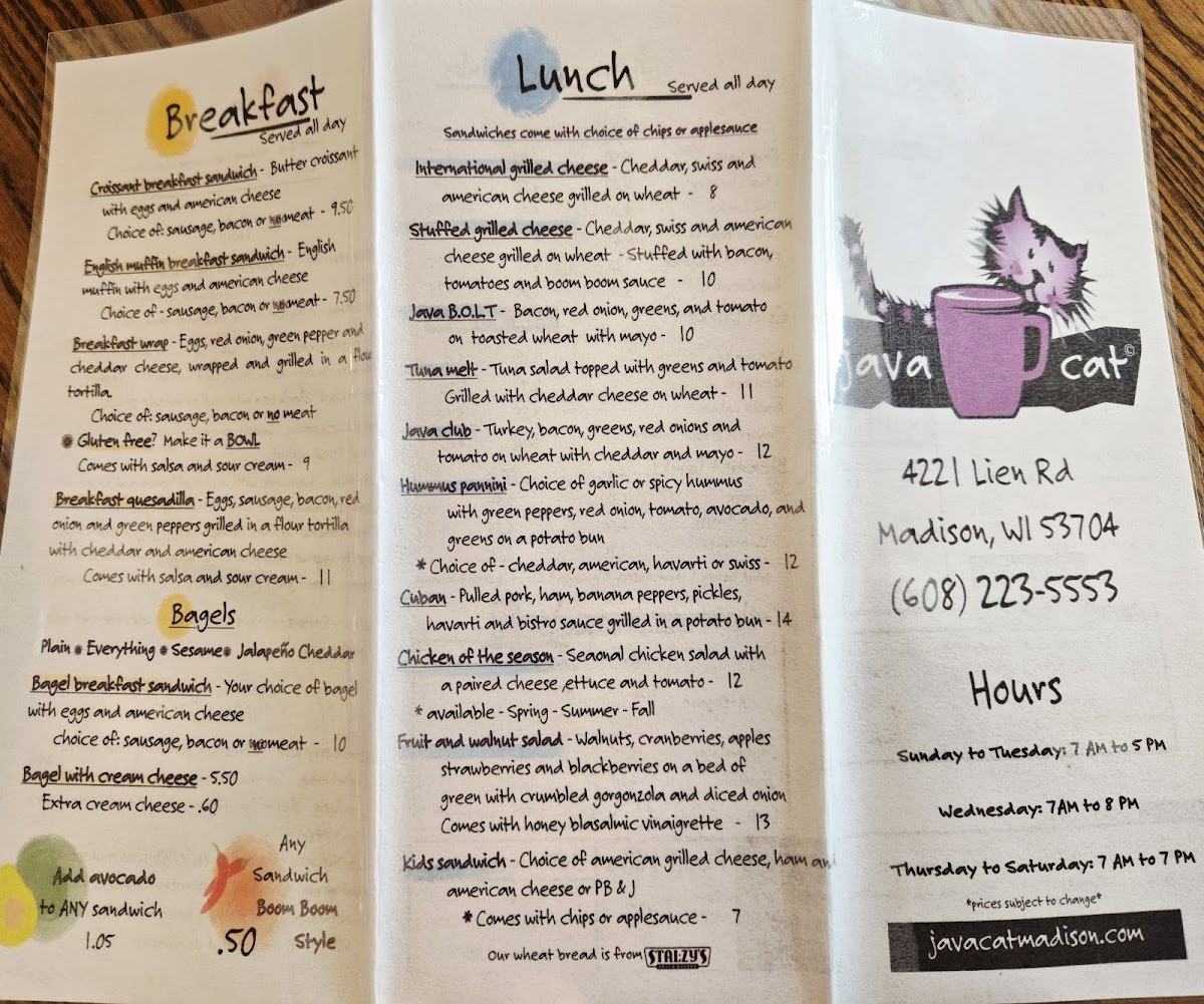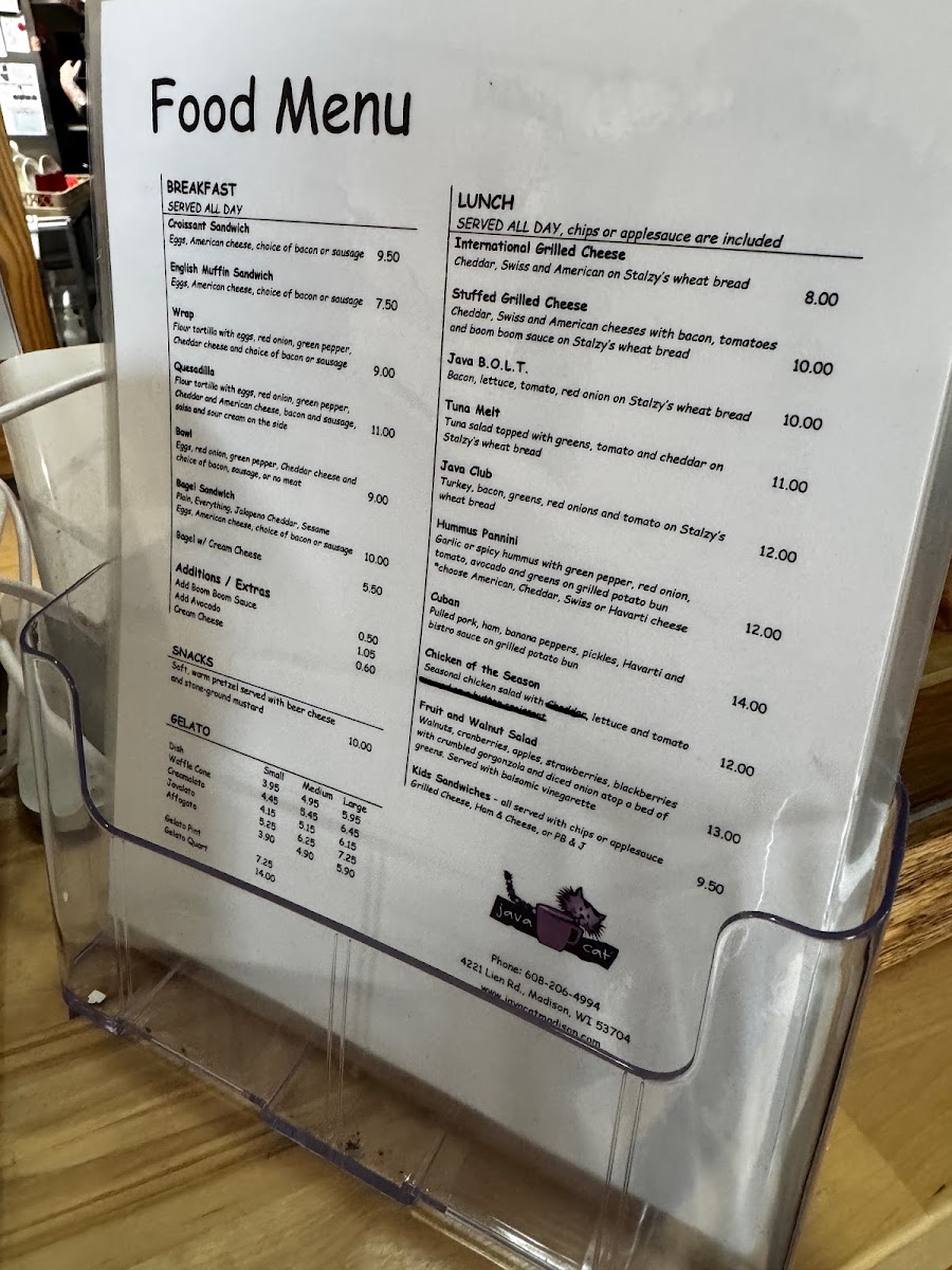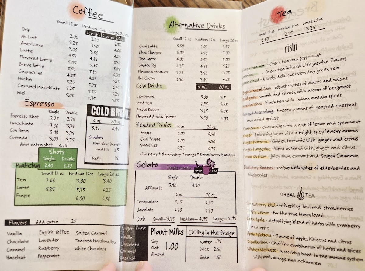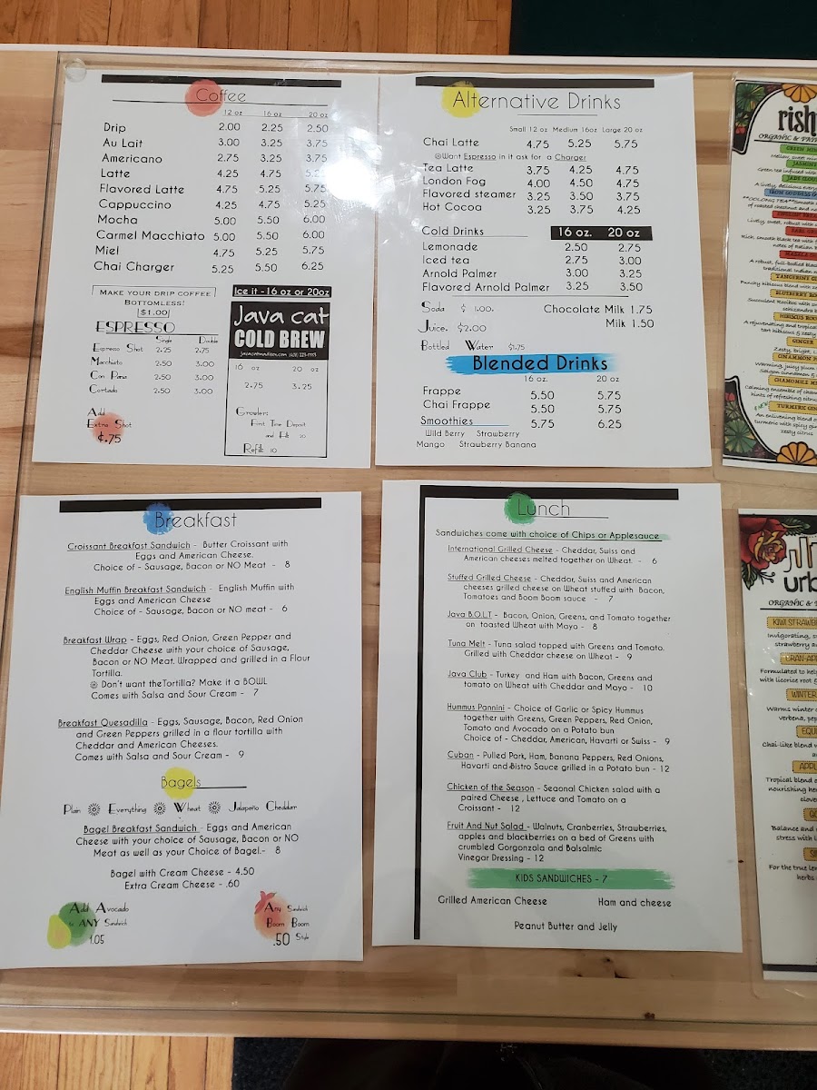 Java Cat Coffee House Menu